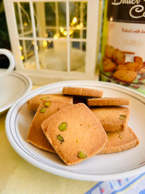 Baked to perfection, each cookie has a crispy texture with a smooth buttery base that melts in your mouth. The addition of pistachios enhances both the flavor and visual appeal, making them an irresistible snack.